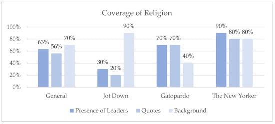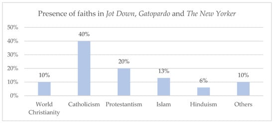 Presence of faiths in the articles analysed in Jot Down, Gatopardo, and The New Yorker.