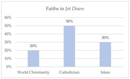 This research has also focussed on which faiths are addressed most in the narrative journalism media analysed. They are displayed in Figure 3.