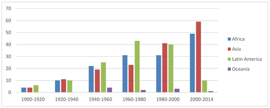 As illustrated in Figure 1, according to the statistics from the Alliance Intermonastique (AIM), foundations of Roman Catholic monasteries in Asia and Africa are a fairly recent phenomenon: