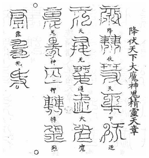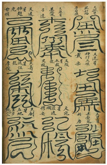In order to gain more clarity about the significance of celestial script in the Daoist context that Water Margin presents, it will be helpful to look at other ritual manuals containing similar forms of celestial script. Several examples are contained in texts ranging from the Ming dynasty Daoist Canon to other “local” manuscripts from the Qing (1644–1911).