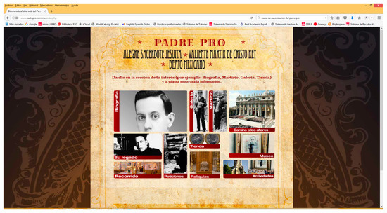 The image below (Figure 3) shows the main page of the official site for the Father Pro canonization movement. The page, run by the office for the cause, gives the reader a general overview of the site, of the place where the museum is located, and of the virtual tour—which can be accessed from the museum.
