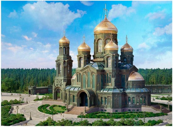 Figure 3): Its main chapel is consecrated in honor of the Resurrection of Christ interpreted as a victory over the “dark forces” and is symbolically projected onto the army, the Church and the entire nation that devote themselves to daily heroic feats. The temple also symbolizes the Russian statehood as a whole and “consecrates” its military activity at all times, disallowing the very question of whether it was righteous or not. As Bishop Klinsky Stefan notes, “this temple is a symbol of our Victory. Not only the Victory in the Great Patriotic War, but also in all the wars and battles Russia conducted over the entire time of its statehood” (
