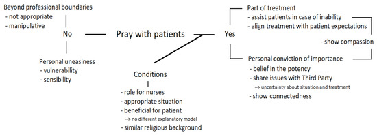 Practitioners with reticence towards prayer for themselves regularly emphasized that praying with patients would be a task for nurses. They reasoned that nurses are more close to patients and more involved in daily routine issues.