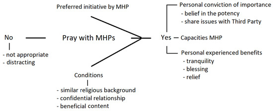 Patients favoring prayer with MHPs tended to focus on personal aspects: the conviction of importance and experienced benefits. They mentioned the same facets as the MHPs: belief in its potency and a ‘shared Third party’. Many patients added the benefits they experienced by prayer; feelings of tranquility, blessing and relief.