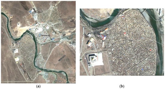 (a) The satellite photo of Yachen Gar clearly shows the spatial set-up. The main buildings, as well as the living quarters of the monks, are situated on the northern side of the river. (b) (detail) The nun’s living quarters are on the south side. According to recent reports, the entire eastern part of the nun’s living quarters on the embankment of the river was demolished. Source: Google Maps.