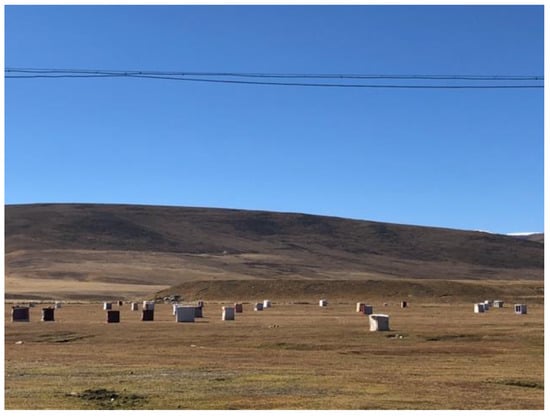 A striking feature of Yachen Gar is the small meditation cells scattered around the hill next to the river and also scattered around a field West of the nunnery encampments (Figure 3 and Figure 4). The practice of long solitary meditation is a primary feature of the prescribed practice of the nuns at Yachen, in aspiration of the Great Perfection or Dzogchen. These huts were makeshift constructions, each differently built. The entrance was sometimes not more than a small prefab window, which allowed only a small person to enter. The huts were barely over a meter high and could only fit one small person sitting for meditation. Some huts were equipped with blankets and liturgic books.