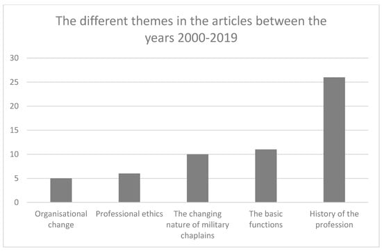 There were 44 articles found from the publications between 2000 and 2019 that focused on military chaplains. Figure 1 presents the frequency of the five themes that were identified in the articles. Many of the articles discussed more than one of the themes identified.