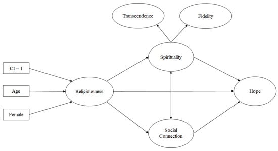 Given the existing research that links religion and hope, the current study aimed to further understand the complexity of the relation between religion and hope among a sample of Salvadoran youth involved in faith-based programming through Compassion International (CI). We tested a conceptual model of hope by examining the relations among religiousness, spirituality, social connections, and hope, among a sample of Salvadoran youth. In addition, we included the CI-enrollment status (1 = enrolled), age, and gender (1 = female) as covariates in the study.