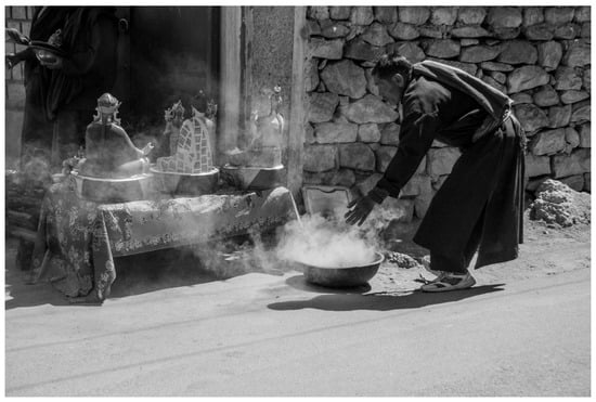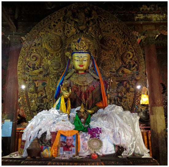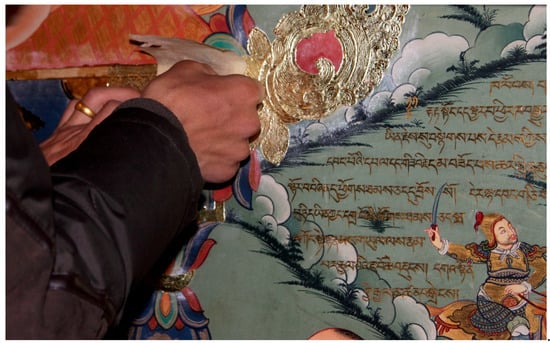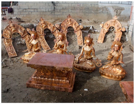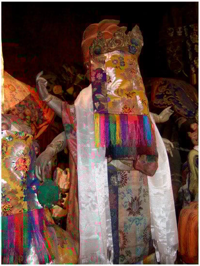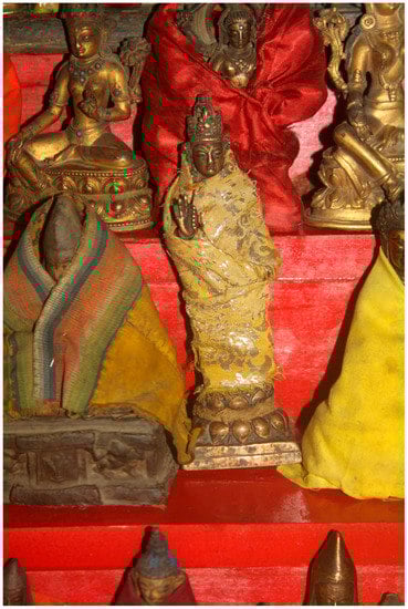 Once images, such as paintings and sculptures, are consecrated, they are forever considered sacred by Himalayan and Tibetan people, wherever they are placed—even if transported to the West and displayed in museums, sold21 by dealers or at auction. It is not location that makes them sacred, but consecration. This is an important consideration, as we know that in museums, statues have sometimes been opened up in order to investigate their contents (, ; ), and without taking into account the beliefs and sensitivities of Tibetan and Himalayan people.