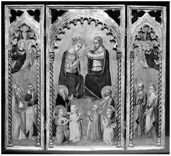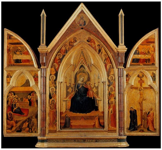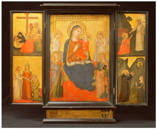 - Wilkins, David G. 2002. Opening the Doors to Devotion: Trecento Triptychs and Suggestions concerning Images and Domestic Practice in Florence. In Italian Panel Painting of the Duecento and Trecento. Edited by Victor M. Schmidt. Washington and New Haven: Yale University Press, pp. 371–93. [Google Scholar]