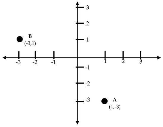 The proposed heuristic device can further be improved with the utilization of numerical points that can quantify both the extent and degree of exclusionary or inclusionary tendencies of groups in a study. Although this is something for another paper or a suggested improvement employing a statistical framework, the numerical valuation that this Cartesian plane inherently possesses is significantly helpful in facilitating a better and clearer exposition of spatial positions and locations of players within a field of exchanges. Assigning negative and positive points in both axes, with the point of intersection given a numerical value of (0,0) (the farther one’s location is to the point (0,0), either in x or y axis) reveals the extent of inclusivity/exclusivity of a certain group. The farther it goes to the top/right of the axis (positive integers) the greater the degree of inclusion while the farther it goes to the bottom/left of the axis (negative integers) indicates an increased degree of exclusion. To numerically plot a certain historical event relative to players’ interaction, norming criteria must be set in place at the onset. In plotting, for example, the event where Akabane parish stopped Filipino gathering in its parochial grounds due to FCs’ inappropriate (and to certain extent illegal) activities, within a scale marked from −3 to 3 (−3, −2, −1, 0, 1, 2, 3), JCs’ exclusionary action is clearly shown to a degree that is strongly manifested (−3) while FCs’ general sentiment of disappointment with their co-ethnics’ behavior manifest a desire to be included (1). Hence, the Akabane incident (A) can be plotted in Quadrant IV with coordinates (1,−3). The formation of MICHIKOTO United, meanwhile, can be understood as a strong manifestation of FCs’ exclusionary tendency to be and have on their own (−3) despite the relative openness of the JCs at this juncture although tolerated and permitted by Japanese parish priests of the four parishes (1). For MICHIKOTO United (B), it can be plotted in Quadrant II with coordinates (−3,1). To illustrate, see Figure 3 below.