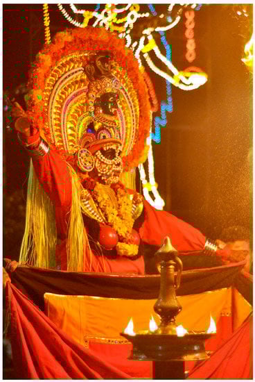 - Pasty, Marianne. 2012. Un théâtre pour le plaisir de la déesse: culte, dévotion et société au Kerala (Inde du Sud). In Théâtres d’Asie à l’œuvre. Circulation, expression, politique. Edited by Gérard Toffin and Hélène Bouvier. Paris: Ecole Française d’Extrême Orient, pp. 59–81. [Google Scholar]