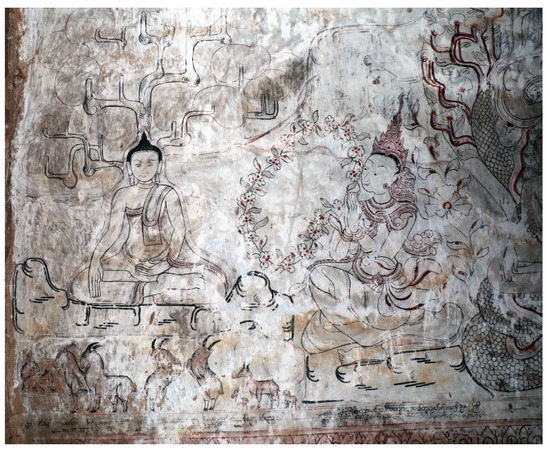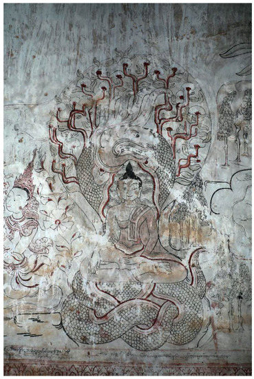 Figure 7). It is not necessary to emphasize that, in this series of paintings, the episode of Mucilinda corresponds to the Sixth Week narrated in the Pāli