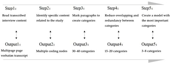 This study applies the general induction method introduced by Thomas (Thomas 2006). An overview of the inductive coding process is shown in Figure 1. The intended outcome of the process is to create between three and eight summary categories that capture the key aspects of the themes identified in the raw data. Inductive coding that identifies more than eight major themes is incomplete. In this case, some of the categories are combined, or the evaluator determines which themes or categories are most important.
