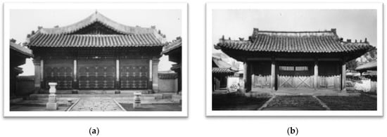 The South Shrine (a) and the East Shrine (b). (photographs held at the Korean National Museum).