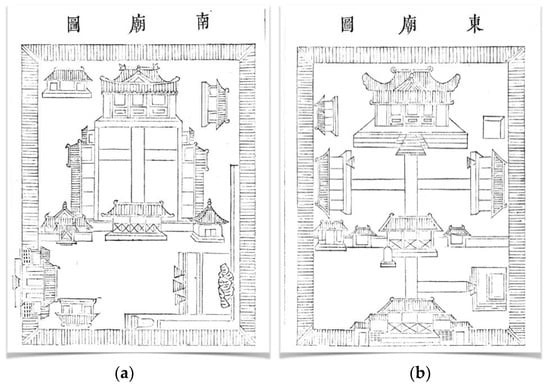 The South Shrine (a) and the East Shrine (b). (Continuation of the Illustrated Records of Sacred Achievements of the Thearch Lord Sage Kwan [KS] 1876, vol. 3, 11a-b).