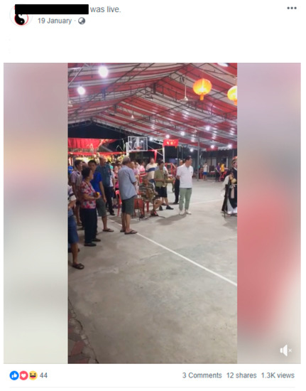 Facebook Live Streaming of the Celebration of a Deity’s Birthday. This Facebook Live Stream was started by one of the temple assistants during the celebration of the deity’s birthday. The name of the sintua has been redacted to protect its anonymity.