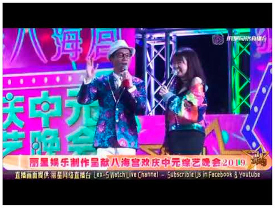 Furthermore, in recent years, some Getai production companies even generated facebook livestream broadcasts for their audiences. LEX(S) Entertainment Production (麗聲娛樂製作), the leading company in Getai Industry, creates Facebook and YouTube channel for the live Getai performances (Figure 6). This new media platform has extended the ethnic space for the Chinese Singaporeans because it provides an opportunity for other dialect speaking communities from China or Taiwan to participate in the same event.