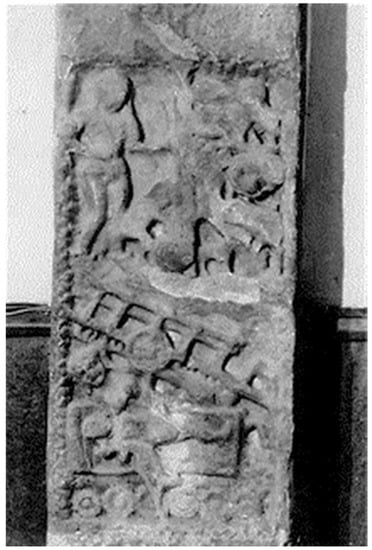 Doorjamb with Exploits of the Young Kṛṣṇa, fourth–sixth century. Maṇḍor, Rajasthan. Sandstone. Jodhpur Museum (photo by courtesy of the American Institute of Indian Studies).