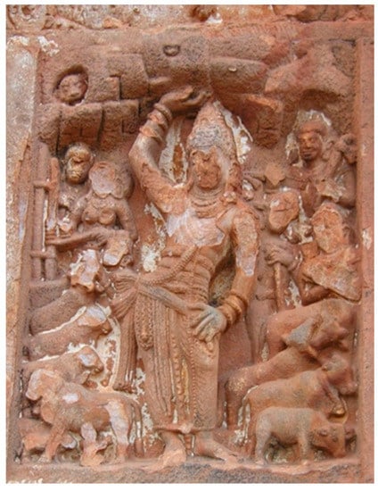 | 22 | The two episodes of the cart and of Pūtanā follow each other in the same chapter of the Harivaṃśa; they were gathered on the Maṇḍor relief, as well as in the contemporaneous cycle of carvings from Deogarh (Madhya Pradesh; Figure 5).  |