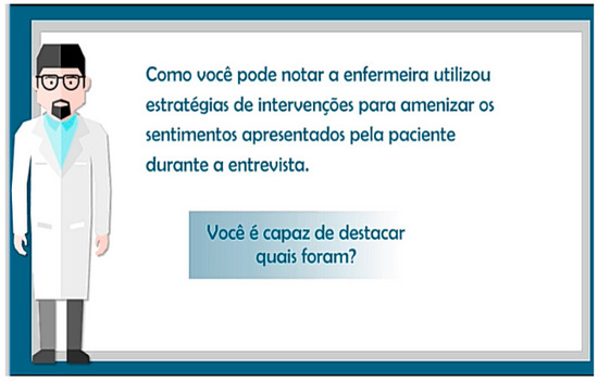This study was approved by the Research Ethics Committee involving human beings of the institution, under opinion nº 1,365,334. In addition, all actors playing characters (nurse and patients) signed the Term of Authorization of Image Use; the narrator, the Authorization Term for Voice Use; and the experts and the students, the respective Terms of Free and Informed Consent.