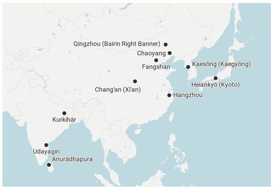 Major sites in the transfer and practice of the Karaṇḍamudrā Dhāraṇī, eighth–twelfth century.