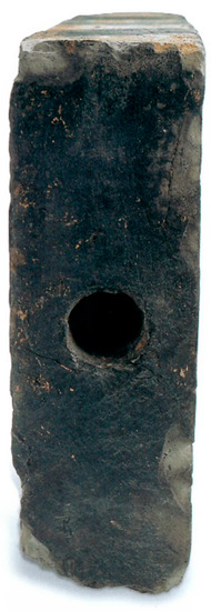 Hollowed brick that encased a printed scroll. Found in the ruins of the Leifengta, Hangzhou, Zhejiang Province, China. Ca. 975 CE, Wuyue (907–978). L. 37 cm; W. 18 cm; D. 6 cm. Zhejiang Provincial Museum. After (Li 2010, p. 132).