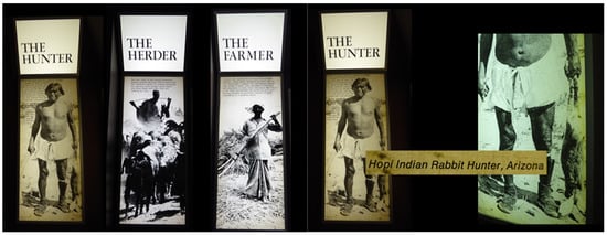 In this introductory exhibit (See Figure 5), three panels exemplified the steps of the cultural Darwinist paradigm. The first image, “Man the Hunter”,15 was followed by “Man the Herder” and then “Man the Farmer”. The unspoken assumption was that farming was a sophisticated technical achievement involving the latest intellectual and economic advances.