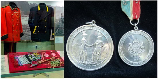 I have written elsewhere about Anishinaabe understandings of ceremonial objects (Matthews 2016, chp. 3, 5), that these Anishinaabe other-than-human persons have the capacity to act in the world, and that, given the right social environment, this can happen in museums. I have argued that they have the power to maintain or resume their place in families and, given the opportunity, can create new relationships in museums and between museums and communities. The Manitoba Museum has over 25,000 artefacts that once belonged to First Nations, Métis, and Inuit peoples. Many of these items came to the museum under some level of duress and suffered the loss of most of their Indigenous provenance, and unlike the Berens coats and medals, most of them have long been estranged from their original families and communities. Thus, these contributions from First Nations families such as the Berens family to the Manitoba Museum are incredibly important. Their provenance is profoundly Indigenous. These objects embody their family’s sense of history and instantiate their personal connection to the treaties. They bring Indigenous histories, Indigenous protocols, and Indigenous family connections with them into the museum. The museum is a complex relational environment, and colonial legacies are often dominant, but these artefacts, as diplomatic and political interventions by Indigenous families, challenge the museum. James Clifford spoke of the museum as a “contact zone” characterized by “copresence, interactions, interlocking understandings and practice, often within radically asymmetrical relations of power” (Pratt 1992, pp. 6–7; quoted in Clifford 1997, p. 192). The Manitoba Museum, as a “contact zone”, remains a place of intersecting intentions, asymmetries of power, and conflicting attributions of agency. However, the relational obligations embedded in the museum’s Indigenous collections combined with the museum’s educational obligations to Indigenous communities have the potential to cause a paradigm shift that pushes back at the colonial inequities that remain part of the legacy of Canadian museums (Clifford 1997, p. 213; Matthews 2016, p. 242; Cf. Task Force 1992, Report on Museums and First Peoples).