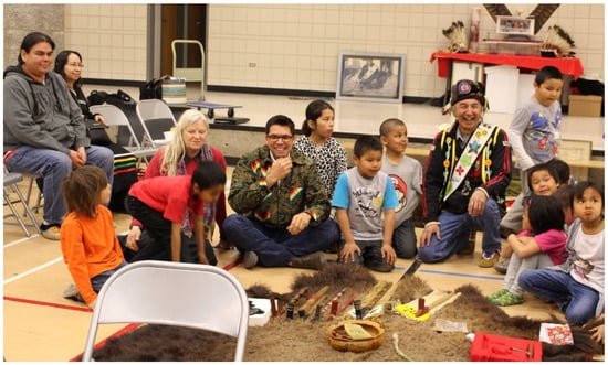 All museums share these frictions because of the unavoidable “asymmetries of power” Clifford identifies, but the Manitoba Museum also has a unique set of affordances that provide opportunities for improving relationships between Indigenous communities and their collections with a minimum of institutional resistance. The most important structural difference between the Manitoba Museum and other provincial museums is that, at the Manitoba Museum, most research and exhibitions are organized around the idea of “biomes”—natural areas of the province which provide the ecological field upon which human and natural history takes place. In these parts of the Manitoba Museum, humans have ecologies, and nature has history. When we talk about the loss of over 90% of native prairie habitat, it is a shared disaster. Throughout the museum, Indigenous and non-Indigenous histories are interwoven and share the same time frame. At no point was there ever a separate exhibit space at the Manitoba Museum for the “timeless” Indigenous culture exhibit, the harmful exhibit that ignores the idea of Indigenous histories and political activism and situates Indigenous peoples and their “lost” cultural identity in the timeless “Indigenous ethnographic present” (Clifford 1983, p. 125). Additionally, as a relatively small museum, the curators at the Manitoba Museum who deal with Indigenous communities are the same individuals who conceive the exhibits, manage their development, select artefacts, and write exhibit text. This means that communities deal with curators and museum management who are in a position to honour requests made in consultation. The other gift that the Manitoba Museum has is its immediate visitor communities. These include many school children and their families from Indigenous, settler, and more recent immigrant communities, and although it is hard to be sure, the curators use a working assumption that 30% of the school kids who will come to the museum in the next few years will have Indigenous family connections.8 The museum’s claim to be “the province’s biggest classroom” and our mandate to serve these Indigenous children place a welcome obligation on the museum to direct programming and exhibits to the needs of this important audience segment. We have stopped writing exhibit text that refers to “they” and “them” because we are now well aware that Indigenous visitors reading this text may be thinking of “me” and “mine”.