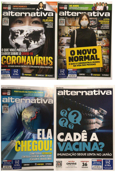 | 1 | Alternativa magazine was launched on 24 May 2001, and has completed twenty years of services to the Brazilian community in Japan. In addition to the printed version—of free distribution, readers can find it on the internet as Alternativa Online (https://www.alternativa.co.jp/) (accessed on 31 July 2021). |