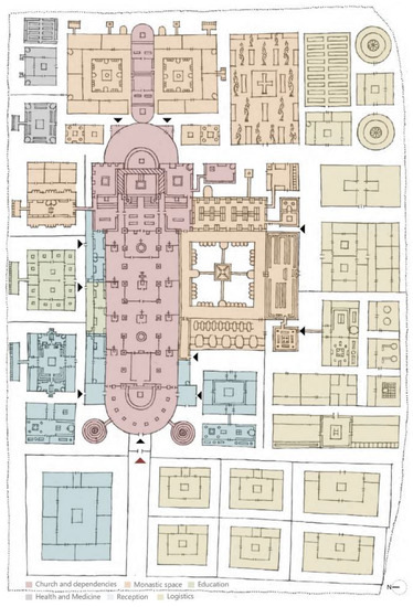 In the end, the boundaries of the Three Temples are blurred and melted into the overall spatial layout while the Church is constantly being strengthened, individualized, and emphasized in the monastery complex.