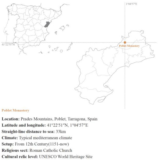 Because this is a wide-ranging topic, it is better to focus on detailed cases studies; therefore, two monasteries, a Buddhist monastery, the Guoqing Monastery, and a Cistercian monastery, the Royal Abbey of Santa Maria de Poblet, have been selected to conduct a comparative analysis. The reasons for their selection will be explained in the following sections.