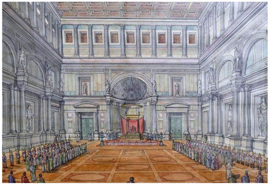 Aula Regia, Reconstruction Sketch of Flavian Palace, Source J C Golvin.