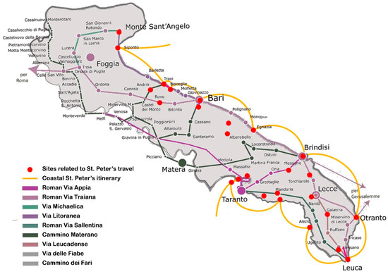 The establishment of a religious-cultural itinerary that traces the transit of St. Peter the Apostle across the Italian peninsula has already been the subject of many studies, which are summarised and integrated in this section (Oliva 2015; Trono and Oliva 2017).