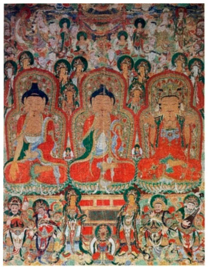 3.1. Introduction of the Listener in Bodhisattva Form and Its Adoption in Buddhist Painting