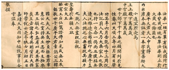 | 10 | Postscript of the Lotus Sutra published at Gyeongseonam Hermitage (1459). It includes the phrase “內出唐本” (meaning “book provided by neifu [內府, the imperial household]”), which refers to a book published by the court of Ming China. This means the Gyeongseonam edition was based on the Chinese court edition of the Lotus Sutra. For further details, see (J. Kim 2015, pp. 18–20). |