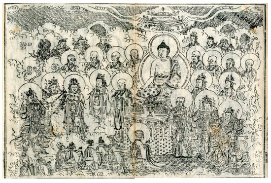 - Weng, Lianxi, and Hongbo Li, eds. 2014. (翁連溪, 李洪波 主編). Complete Works of Chinese Buddhist Prints (Zhongguo fojiao banhua quanji 中國佛敎版畵全集). Beijing: Zhongguo shudian (中國書店). [Google Scholar]