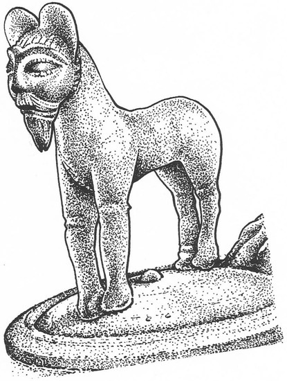 Bronze figurine of a human-faced dog, from the late Roman temple at Lydney, Gloucestershire, UK.