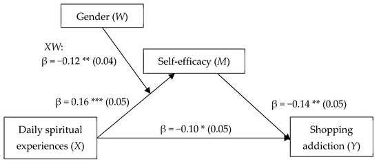 Charzyńska, E.; Sitko-Dominik, M.; Wysocka, E.; Olszanecka-Marmola, A. Exploring the Roles of Daily Spiritual Experiences, Self-Efficacy, and Gender in Shopping Addiction: A Moderated Mediation Model. Religions 2021, 12, 355. https://doi.org/10.3390/rel12050355