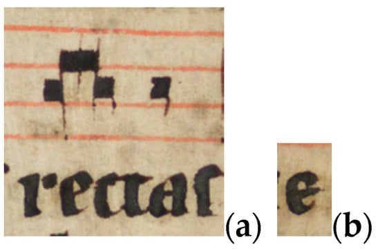 We do not know who wrote the manuscript or where it was written. In two places a note-sign typical for Icelandic liturgical manuscripts with music notation is used: a so-called double or twin note where two squares indicating the pitch are written so closely together (or even overlap) that they form one note head with two stems (see Figure 1a). Another detail that might point to Iceland as the place of origin is the use of a particular form of the letter e (see Figure 1b).6