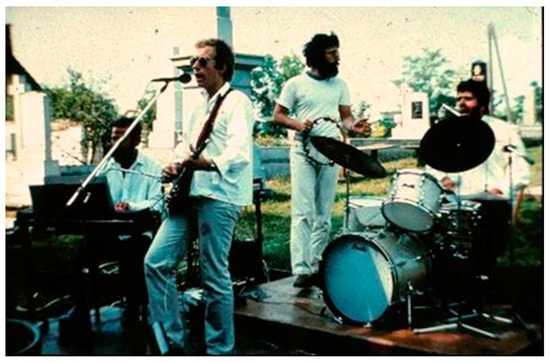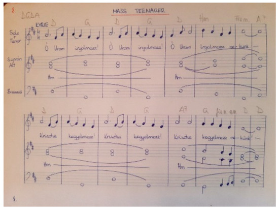 With the meetings in Nagymaros, a new kind of musical style also started, which has become a significant movement (see Figure 2). Due to its melodic world and musical sound, it was now able to leave the walls of the church and become singable in individual or small group settings. This kind of pol-beat-style music simultaneously condenses liturgical, worship, entertaining functions and usability. In addition to the melodic world, its movement was also due to the fact that from the Sillye, the music was no longer heard from above, from the gallery of churches, but from below, near the altar, as an integral part of the encounter and the liturgy (Kamarás 2008).