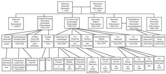 Family tree compiled by Oksana Rybakina, St. Petersburg, 1990.