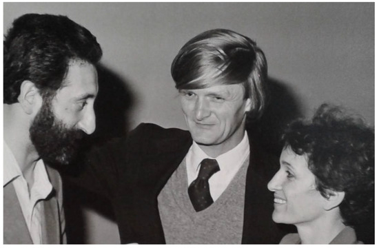 Anon.: Photograph of Lazar Fleishman, John E. Bowlt and Nicoletta Misler at the conference, “Pavel Filonov: Painter of Metamorphosis”, held at the Solomon R. Guggenheim Museum, New York, 22–23 April 1983.