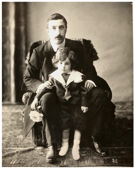 Anon.: Photograph of Arman Frantsevich Aziber (Armand Azibert, 1878–914) and son, Anatolii, 1909–13?), 1913 or 1914 (private collection).