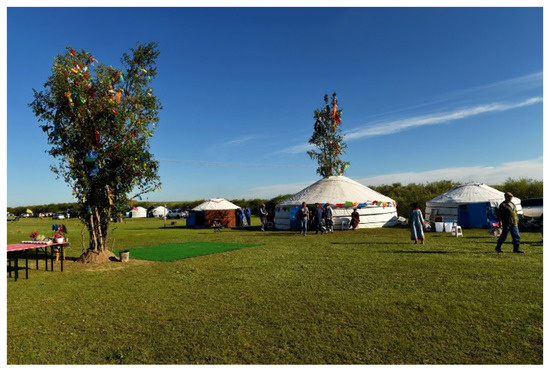 The creation of the ritual space conducted by the Daur and other ethnic groups as described above is arguably “linked to what we define as sacred landscape both in the human and physical as well as in the other-than-human world” (Foutiou et al. 2017, p. 7). Human persons, the felt house, artifacts, tooroo trees, barken idols, and onggor spirits constitute a complex relational network encompassing both human and other-than-human levels. All these actors in this network play a role as a subject, filled with agential and affective properties of personhood. Interactions between them are thus intersubjective and interpersonal. In other words, whether humans, artifacts, or noncorporeal beings, they become themselves through interactions with each other. Here, we may recall what Ingold has proposed as a “domain of entanglement” (Ingold 2006, p. 14), within which “beings of all kinds, more or less person-like or thing-like, continually and reciprocally bring one another into existence” (Ingold 2006, p. 10).
