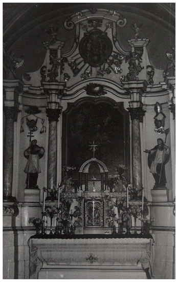 The socialist-era government’s human rights rhetoric has been forgotten or dismissed by contemporary Transylvanian Hungarian intellectuals who reinterpret many of these built structures within the framework of post-socialist national contestation. According to historian Endre Ványolós, official socialist discourse provides an inadequate explanation for the project, since there was no need for a new National Theater during a period when the government’s funding plans focused on building housing developments, industrial factories, and stadiums (Ványolós 2016, p. 14). When Catholic priests rescued the baroque-style main altar from the ruins of the Franciscan church and continued to use it in worship, present-day intellectuals narrate this act as high-art Catholic resistance to state-sponsored ethnic animus (See Figure 6). While anthropologists studying Brazilian (Millar 2008) and Zambian (Hansen 2000) waste collectors have shown that neoliberal capitalism depends not only on formal wage labor but also on the informal work of “making trash into treasure,” in Romania and Hungary “recycling” waste as high art is a fundamentally political process (Gille 2004, 2007; Loustau 2020; Heintz 2006). These objects, according to the museum’s directors, fell into disuse not because Catholics had changed their tastes but “for reasons of historical transformation” (Magyar 2014).