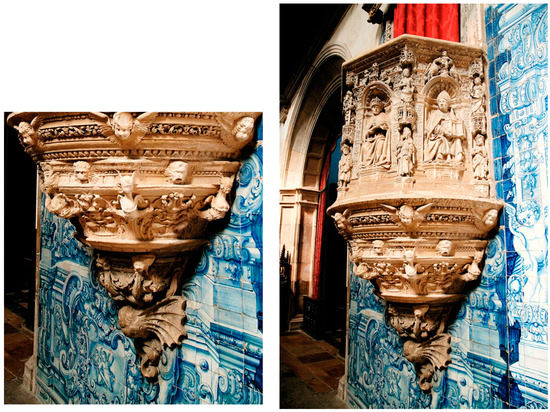 Renaissance stone pulpit, Church of Santa Cruz, Coimbra, Portugal. Probably carved by Nicolas Chantereuse (b. Normandy), ca.1485–1551.