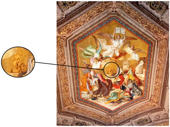 Angels holding the Summa contra Gentiles by St. Thomas Aquinas, Vault Fresco Gallery of Maps, Vatican, 1580s.