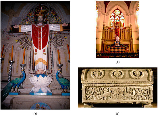 (a,b) Nineteenth-century altar of the Church of San Thome, Mylapore (1893), Chennai, and (c) Bishop Theodore’s sarcophagus (5th century), Sant’Apollinare in Classe, Ravenna.